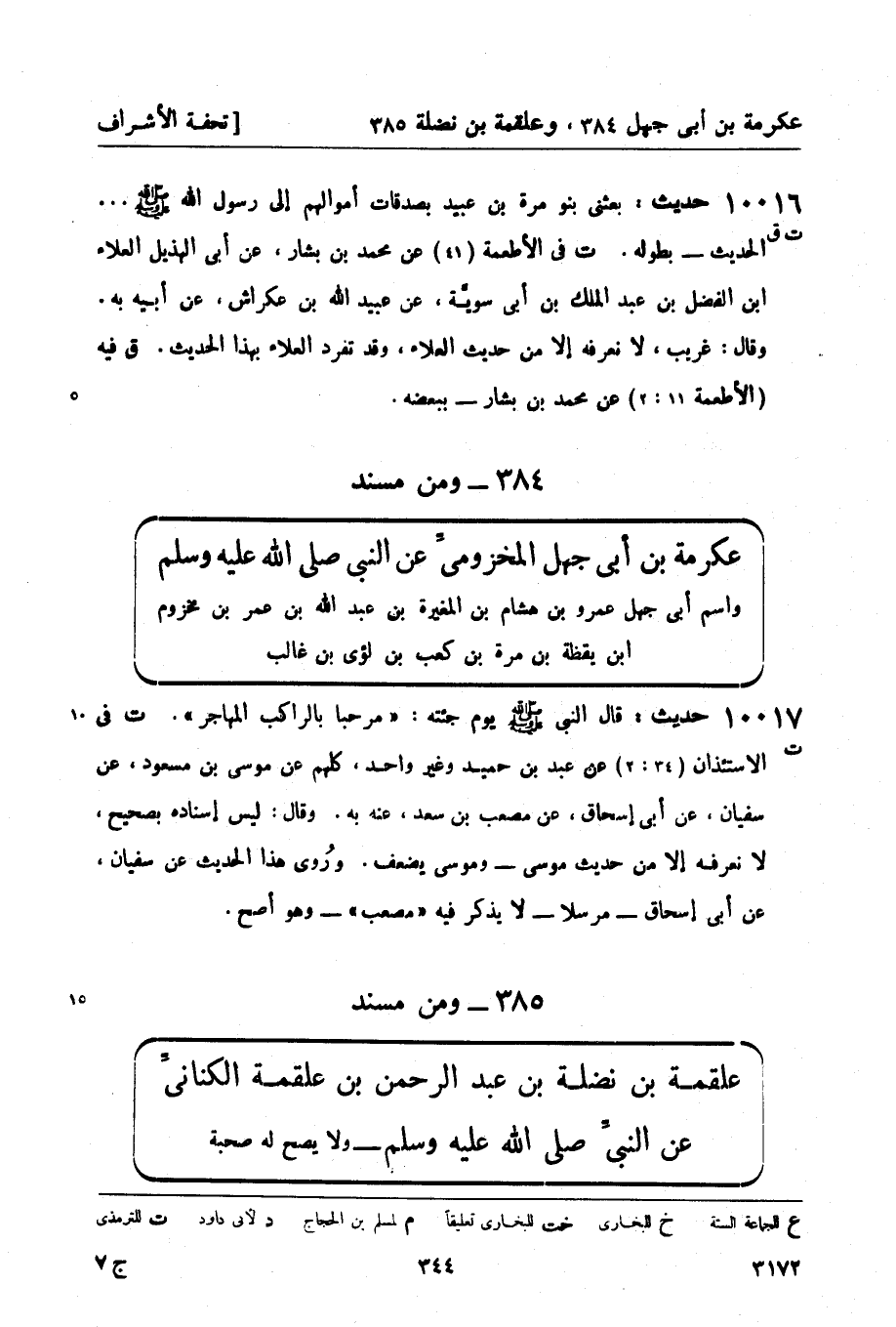 ومن مسند علقمة بن نضلة بن عبد الرحمن بن علقمة الكنانيِّ عن النبيِّ صَلَّى اللَّهُ عَلَيْهِ وَسَلَّمَ - ولا يصح له صحبة