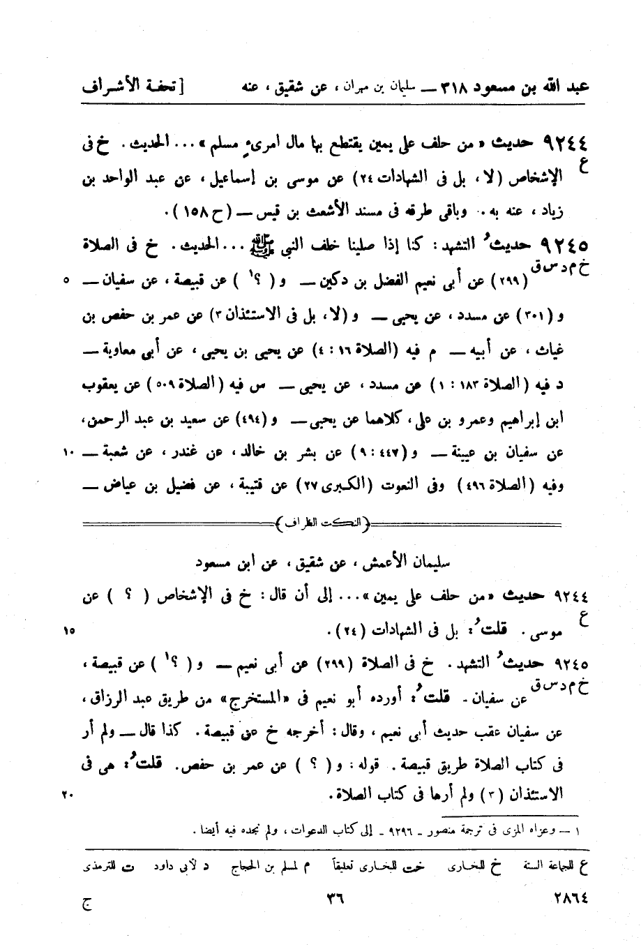 ق في الصلاة (63: 1) عن أبي بكر بن خلاد , عن يحيى القطان - و (63: 1) عن محمد بن عبد الله بن نمير , عن أبيه - و (63: 3) عن محمد بن معمر , عن قبيصة، عن سفيان - و (63: 2) عن محمد بن يحيى الذهلي، عن عبد الرزاق , عن سفيان - عشرتهم عنه به. ذكر خلف أن حديث قبيصة في بعض النسخ ولم يذكره أبو مسعود.