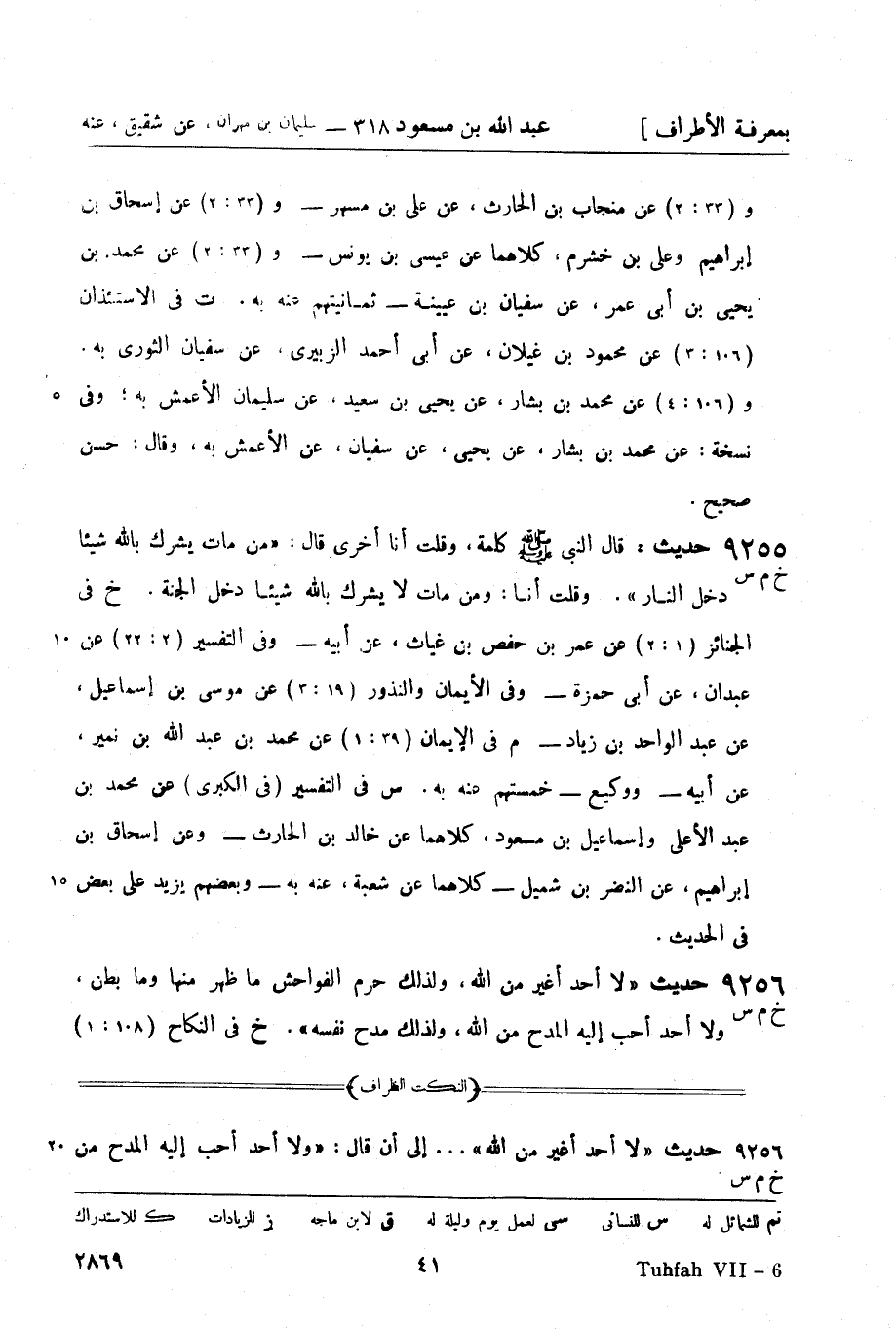 م في التوبة (7: 1) عن عثمان بن أبي شيبة وإسحاق بن إبراهيم، كلاهما عن جرير - و (7: 2) عن ابن نمير وأبي كريب، كلاهما عن أبي معاوية - و (7: 2) عن أبي بكر بن أبي شيبة , عن عبد الله بن نمير - وأبي معاوية -