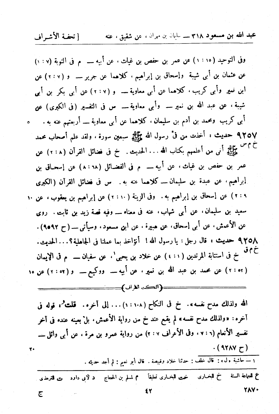 س في فضائل القرآن (الكبرى 9: 2) عن إسحاق بن إبراهيم به. وفي الزينة (10: 2) عن إبراهيم بن يعقوب , عن سعيد بن سليمان , عن أبي شهاب عنه في معناه - وفيه قصة زيد بن ثابت. روي عن الأعمش , عن أبي إسحاق , عن هبيرة عن ابن مسعود وسيأتي - (ح 9592) .