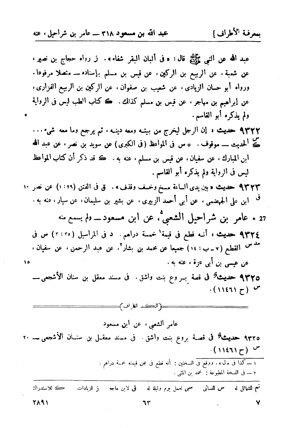 9324 -[ق] حديث بين يدي الساعة مسخ وخسف وقذف. (ق) في الفتن (29: 1) عن نصر بن علي الجهضمي , عن أبي أحمد الزبيري , عن بشير بن سليمان , عن سيار , عنه به.