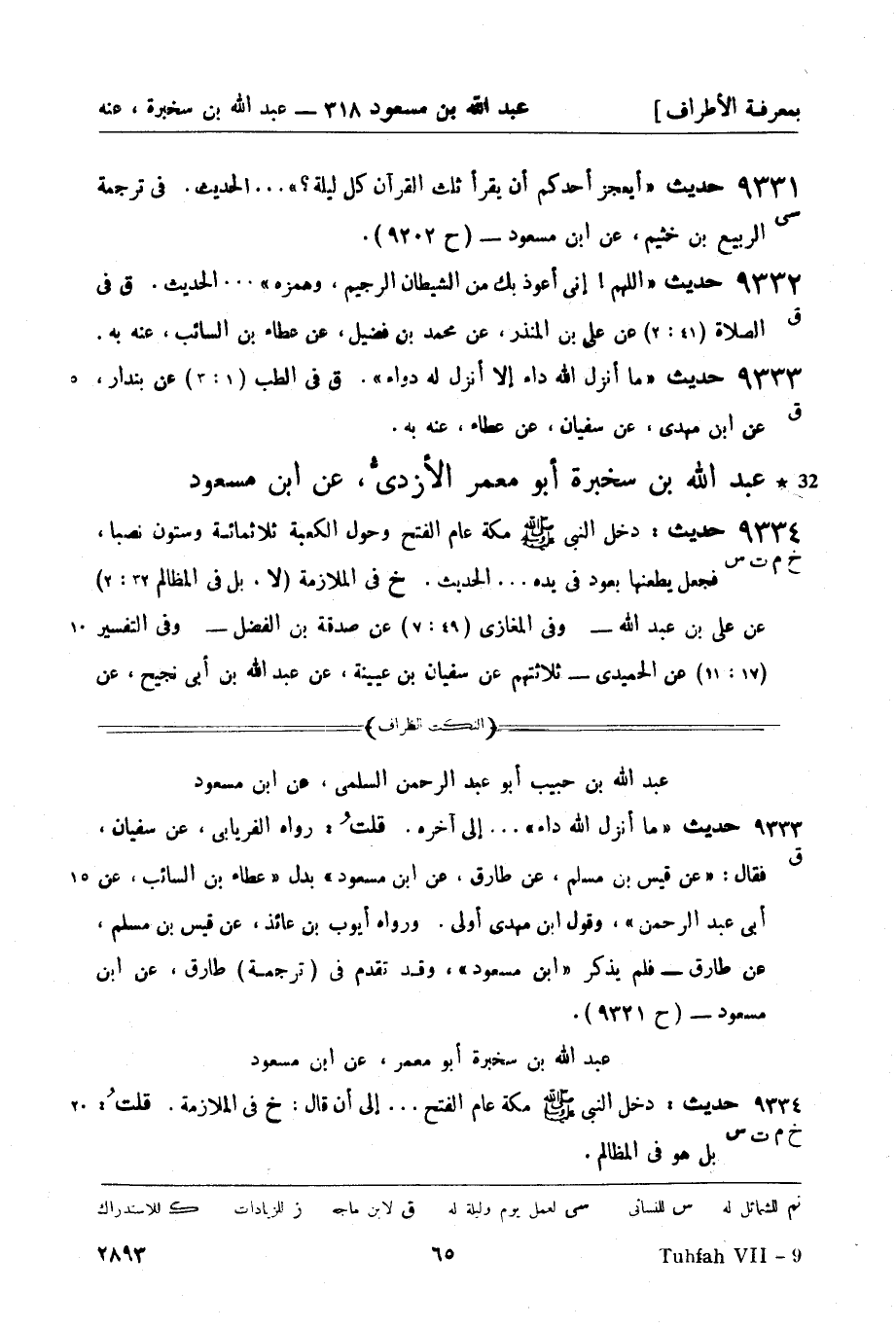 9332 -[سي] حديث أيعجز أحدكم أن يقرأ ثلث القرآن كل ليلة؟ ... الحديث. في ترجمة الربيع بن خثيم، عن ابن مسعود - (ح 9202) .