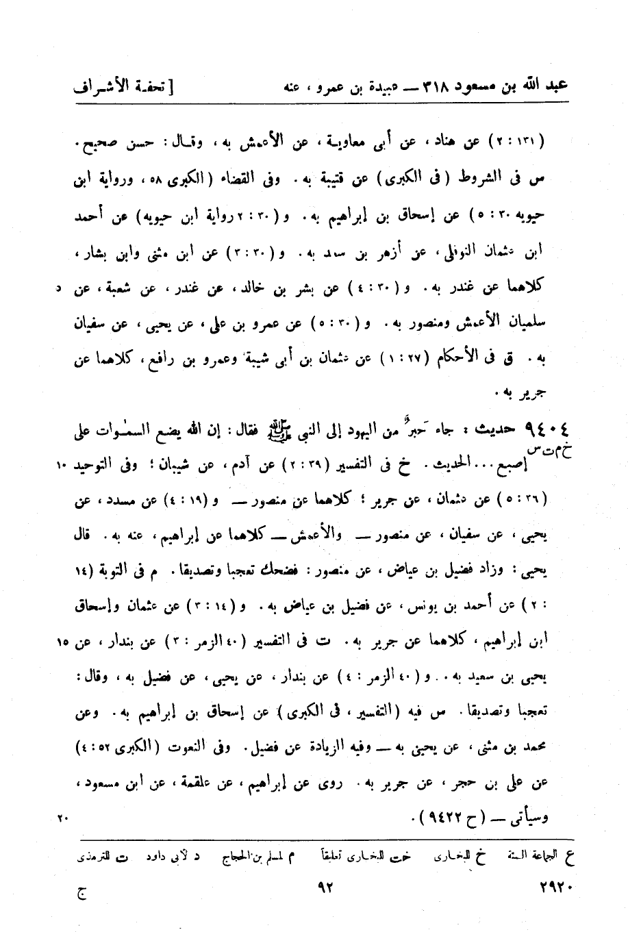 س فيه (التفسير , في الكبرى) عن إسحاق بن إبراهيم به. وعن محمد بن مثنى , عن يحيى به - وفيه الزيادة عن فضيل. وفي النعوت (الكبرى 52: 4) عن علي بن حجر , عن جرير به. روي عن إبراهيم , عن علقمة , عن ابن مسعود , وسيأتي - (ح 9422) .