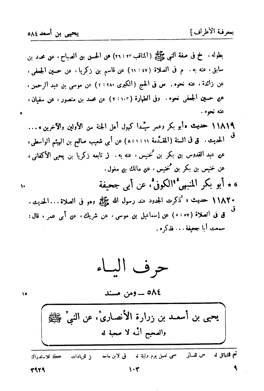 ومن مسند يحيى بن أسعد بن زرارة الأنصاريِّ، عن النبي صَلَّى اللَّهُ عَلَيْهِ وَسَلَّمَ والصحيح أنَّه لا صحبة له.