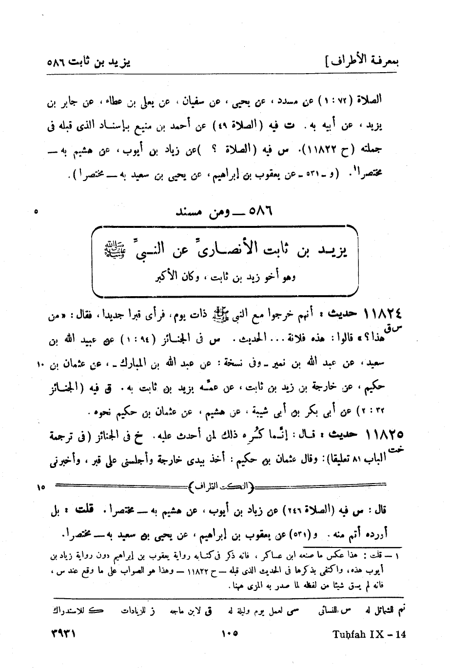 س في الجنائز (94: 1) عن عبيد الله بن سعيد، عن عبد الله بن نمير - وفي نسخة: عن عبد الله بن المبارك، عن عثمان بن حكيم، عن خارجة بن زيد بن ثابت، عن عمِّه يزيد بن ثابت به.
