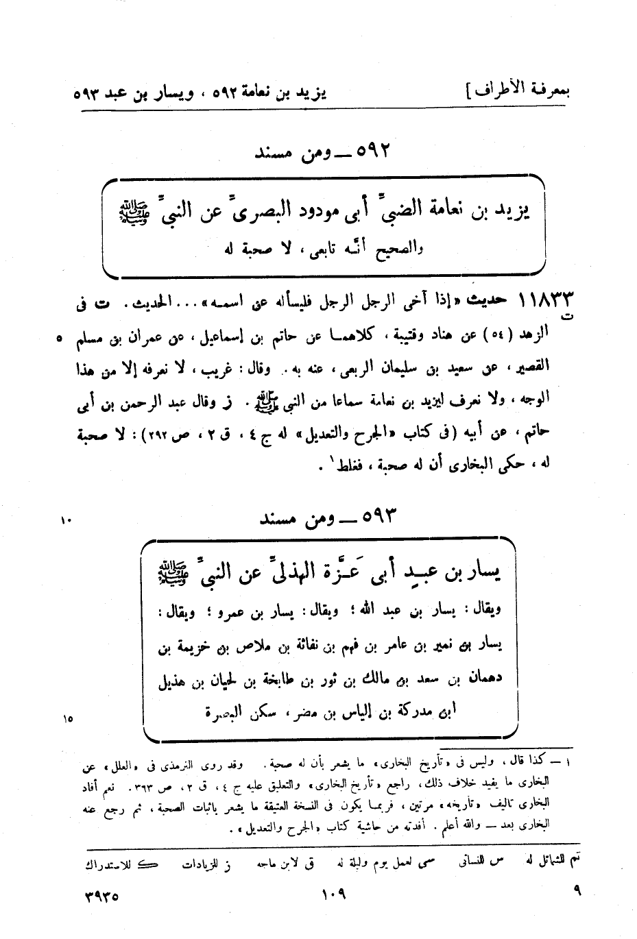 ومن مسند يزيد بن نعامة الضبيِّ أبي مودود البصريِّ عن النبي صَلَّى اللَّهُ عَلَيْهِ وَسَلَّمَ والصحيح أنَّه تابعي، لا صحبة له