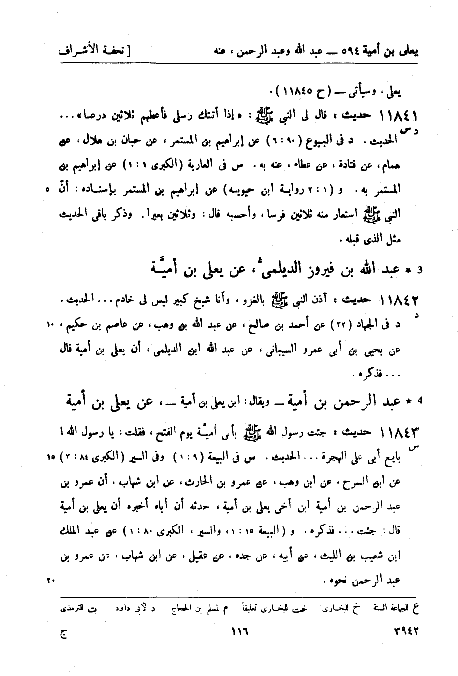 س في البيعة (9: 1) وفي السير (الكبرى 84: 3) عن ابن السرح، عن ابن وهب، عن عمرو بن الحارث، عن ابن شهاب، أن عمرو بن عبد الرحمن بن أمية ابن أخي يعلى بن أمية، حدثه أن أباه أخبره أن يعلى بن أمية قال: جئت ... فذكره. و (البيعة 15: 1، والسير، الكبرى 80: 1) عن عبد الملك بن شعيب بن الليث، عن أبيه، عن جده، عن عقيل، عن ابن شهاب، عن عمرو بن عبد الرحمن نحوه.