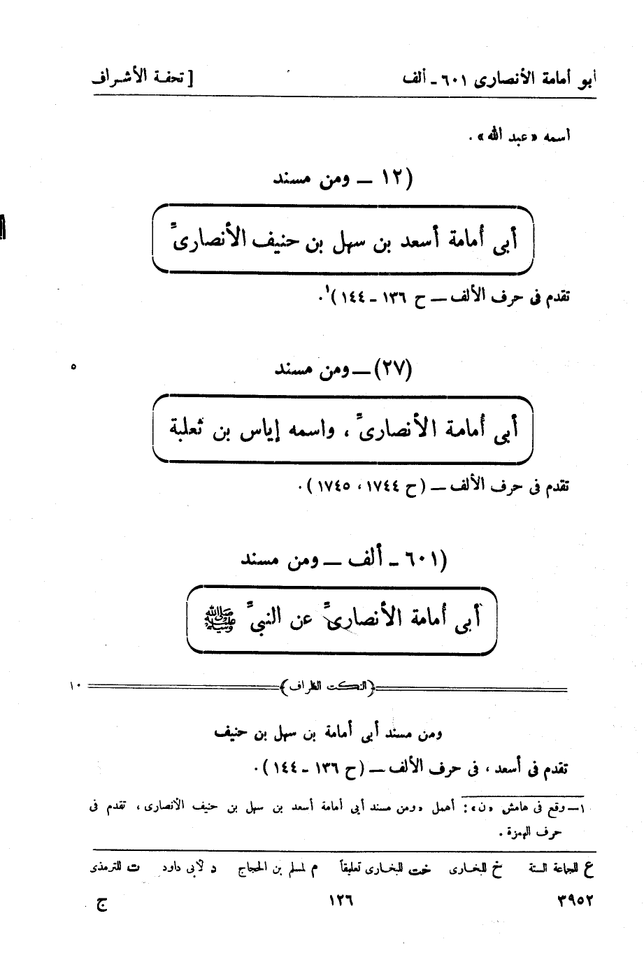 ومن مسند أبي أُمامة أسعد بن سهل بن حنيف الأنصاريِّ تقدم في حرف الألف - ح 136 - 144)