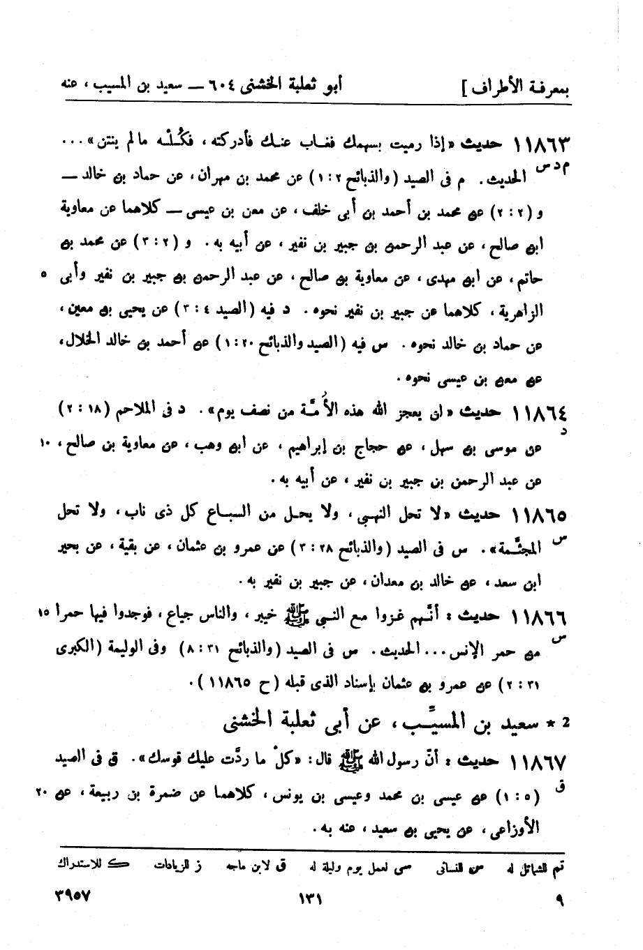 س في الصيد (والذبائح 31: 8) وفي الوليمة (الكبرى 31: 2) عن عمرو بن عثمان بإسناد الذي قبله (ح 11865) .