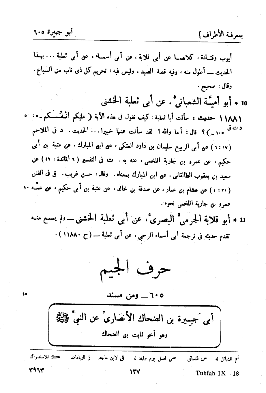 أبو قلابة الجرميُّ البصريُّ، عن أبي ثعلبة الخشني - ولم يسمع منه تقدم حديثه في ترجمة أبي أسماء الرحبي، عن أبي ثعلبة - (ح 11880) .