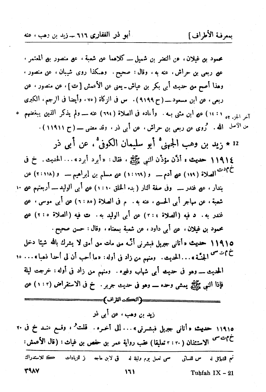 ت في الإيمان (18: 5) عن محمود بن غيلان، عن أبي داود، عن شعبة، عن شيوخه الثلاثة (أي الأعمش، وحبيب بن أبي ثابت وعبد العزيز بن رفيع) به، وقال: حسن صحيح.