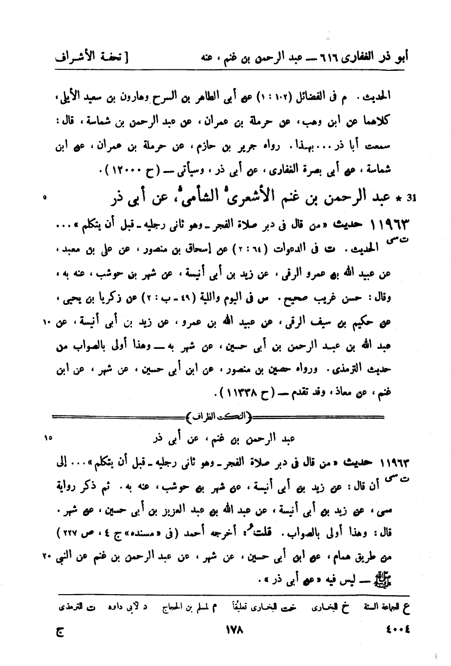 عبد الرحمن بن غنم الأشعريُّ الشأميُّ، عن أبي ذر