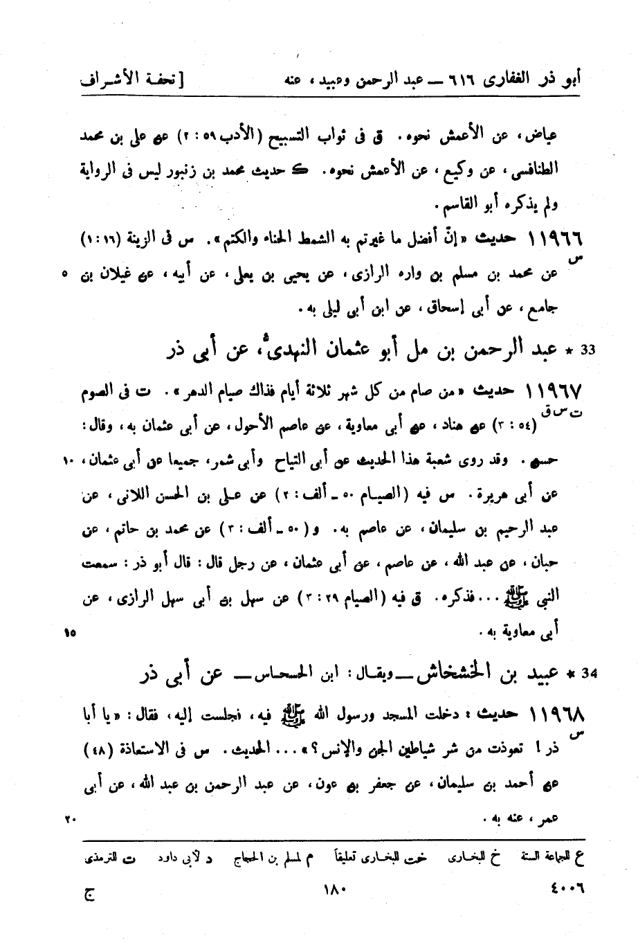 س فيه (الصيام 50 - ألف: 2) عن علي بن الحسن اللاني، عن عبد الرحيم بن سليمان، عن عاصم به. و (50 - ألف: 3) عن محمد بن حاتم، عن حبان، عن عبد الله، عن عاصم، عن أبي عثمان، عن رجل قال: قال أبو ذر: سمعت النبيّ صَلَّى اللَّهُ عَلَيْهِ وَسَلَّمَ ... فذكره