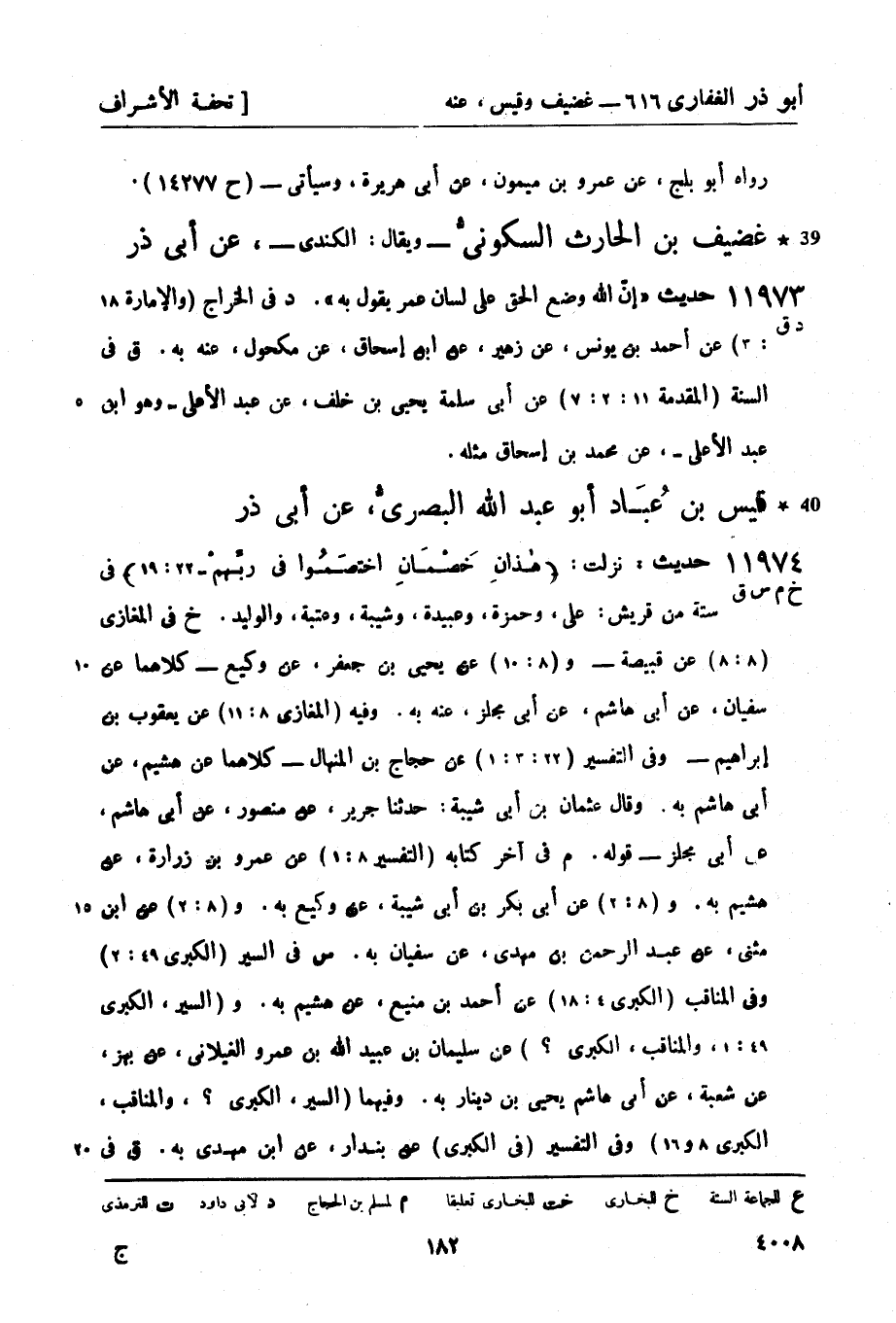ق في -[183]- الجهاد (29: 1) عن يحيى بن حكيم وحفص بن عمرو الربالي، كلاهما عن ابن مهدي به. و (29: 1) عن محمد بن إسماعيل، عن وكيع به. رواه سليمان التيمي، عن أبي مجلز، عن قيس بن عباد، عن علي، وقد مضى - (ح 10256) . 41 مرثد الذِّماريُّ - والد مالك بن مرثد -، عن أبي ذر