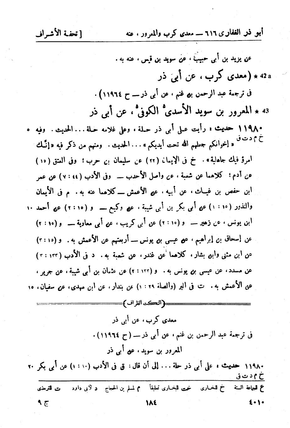 (معدي كرب، عن أبي ذر في ترجمة عبد الرحمن بن غنم، عن أبي ذر - ح 11964) .