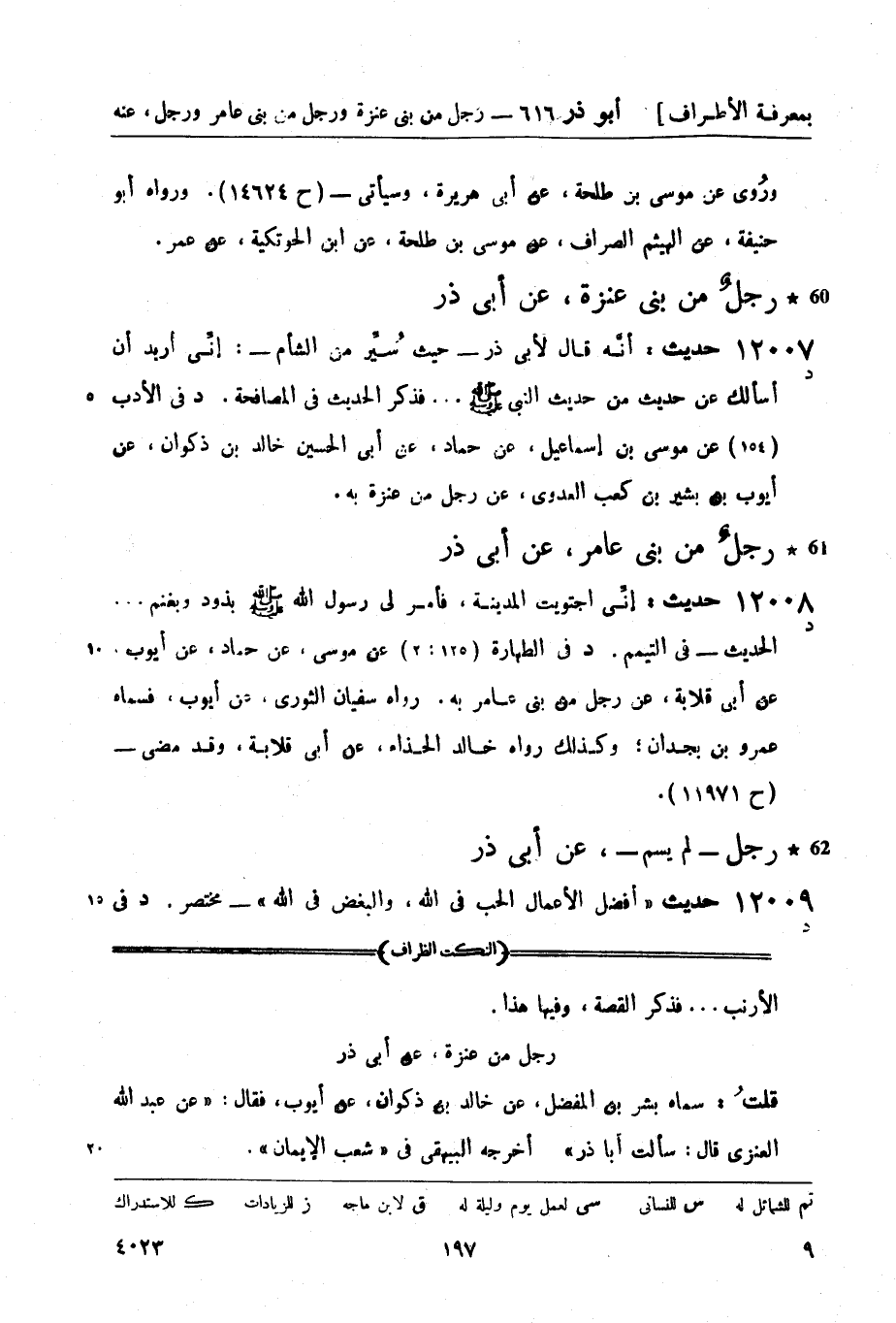 12007 -[د] حديث: أنَّه قال لأبي ذر - حيثُ سيِّر من الشأم -: إنِّي أريد أن أسألك عن حديث من حديث النبيّ صَلَّى اللَّهُ عَلَيْهِ وَسَلَّمَ ... فذكر الحديث في المصافحة.