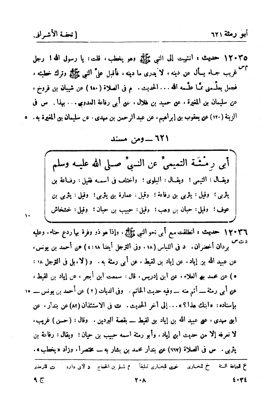 ت في الاستئذان (82) عن بندار، عن ابن مهدي، عن عبيد الله بن إياد بن لقيط - بقصة البردين. وقال: (حسن) غريب، لا نعرفه إلا من حديث ابن إياد، وأبو رمثة اسمه حبيب بن حيان؛ ويقال: رفاعة بن يثربي.