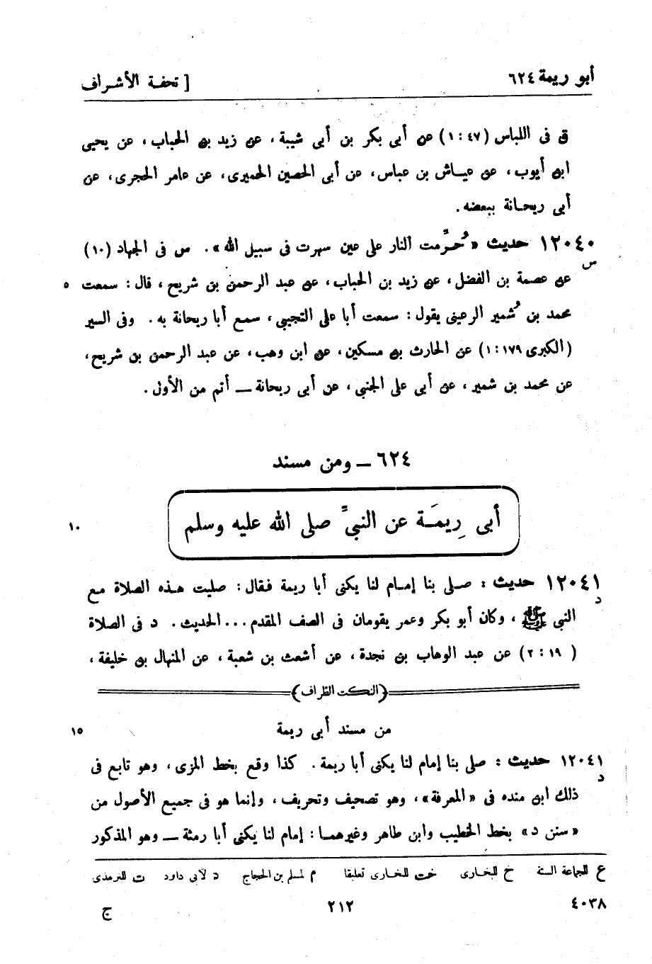 12041 -[د] حديث: صلى بنا إمام لنا يكنى أبا ريمة فقال: صليت هذه الصلاة مع النبي صَلَّى اللَّهُ عَلَيْهِ وَسَلَّمَ، وكان أبو بكر وعمر يقومان في الصف المقدم ... الحديث.