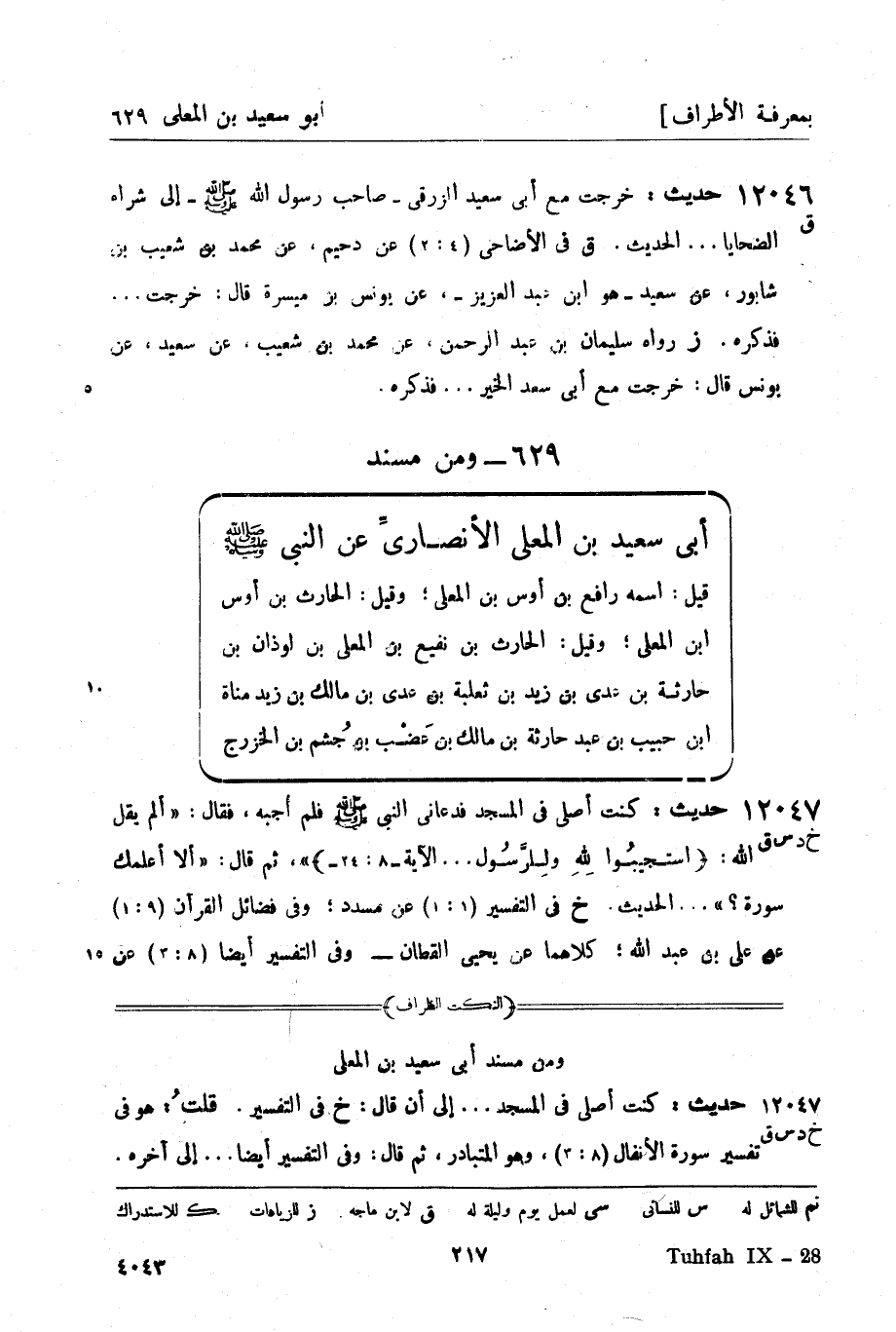12047 -[خ د س ق] حديث: كنت أصلي في المسجد فدعاني النبي صَلَّى اللَّهُ عَلَيْهِ وَسَلَّمَ فلم أُجبه، فقال: ألم يقل الله: استجيبُوا لِلَّهِ ولِلَّرسُول ... الآية (8: 24) ، ثم قال: ألا أعلمك سورة؟ ... الحديث.