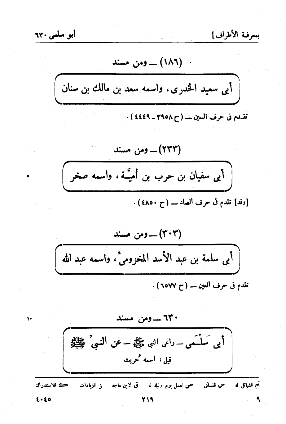 ومن مسند أبي سعيد الخدري، واسمه سعد بن مالك بن سنان تقدم في حرف السين - (ح 3958 - 4449) .