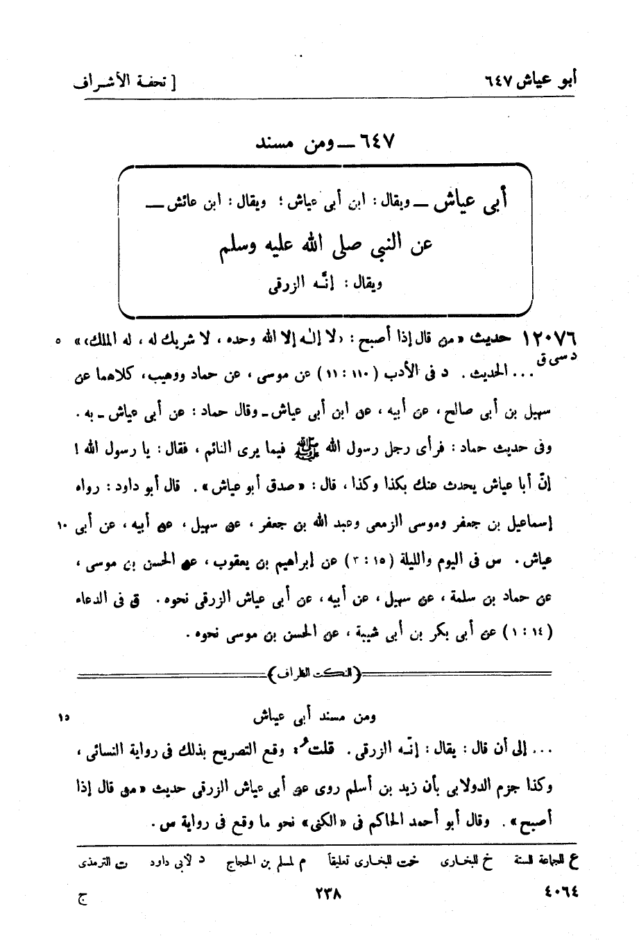 د في الأدب (110: 11) عن موسى، عن حماد ووهيب، كلاهما عن سهيل بن أبي صالح، عن أبيه، عن ابن أبي عياش - وقال حماد: عن أبي عياش - به. وفي حديث حماد: فرأى رجل رسول الله صَلَّى اللَّهُ عَلَيْهِ وَسَلَّمَ فيما يرى النائم، فقال: يا رسول الله! إنّ أبا عياش يحدث عنك بكذا وكذا، قال: صدق أبو عياش. قال أبو داود: رواه إسماعيل بن جعفر وموسى الزمعي وعبد الله بن جعفر، عن سهيل، عن أبيه، عن أبي عياش.
