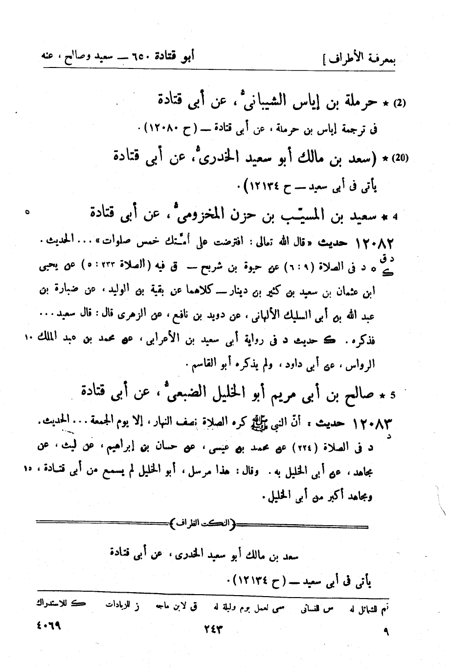 ق فيه (الصلاة 233: 5) عن يحيى بن عثمان بن سعيد بن كثير بن دينار - كلاهما عن بقية بن الوليد، عن ضبارة بن عبد الله بن أبي السليك الألهاني، عن دويد بن نافع، عن الزهري قال: قال سعيد ... فذكره. (ك) حديث
