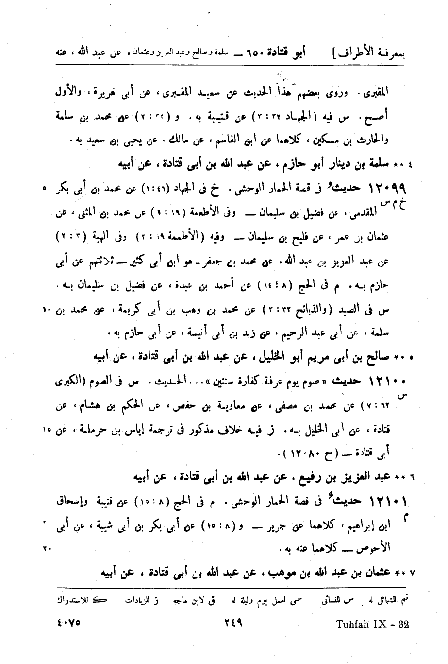 س في الصوم (الكبرى 62: 7) عن محمد بن مصفي، عن معاوية بن حفص، عن الحكم بن هشام، عن قتادة، عن أبي الخليل به. (ز) فيه خلاف مذكور في ترجمة إياس بن حرملة، عن أبي قتادة - (ح 12080)