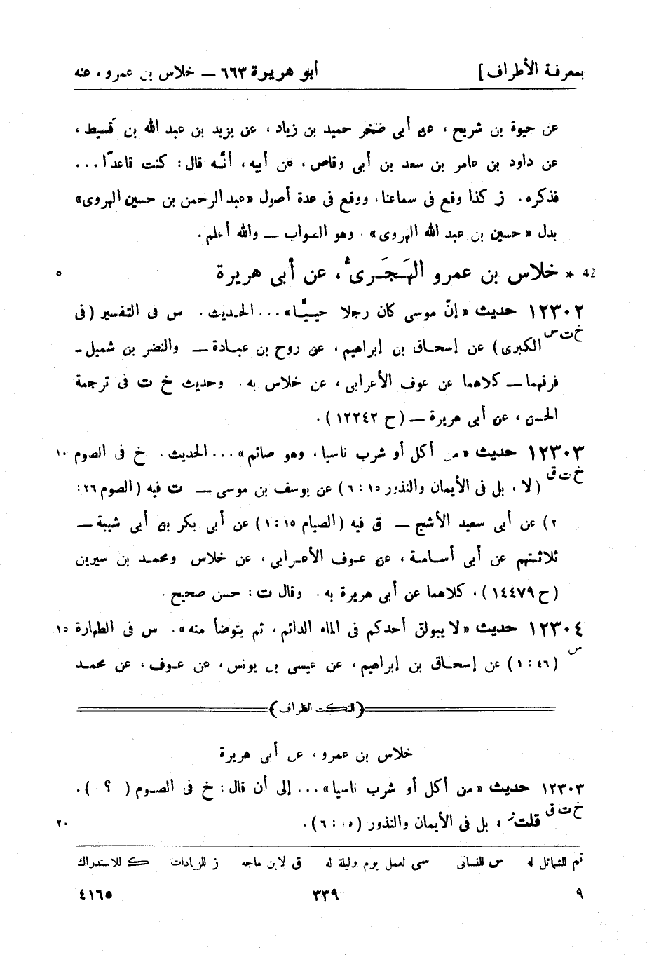 س في التفسير (في الكبرى) عن إسحاق بن إبراهيم، عن روح بن عبادة - والنضر بن شميل - فرقهما - كلاهما عن عوف الأعرابي، عن خلاس به. وحديث (خ ت) في ترجمة الحسن، عن أبي هريرة - (ح 12242) .