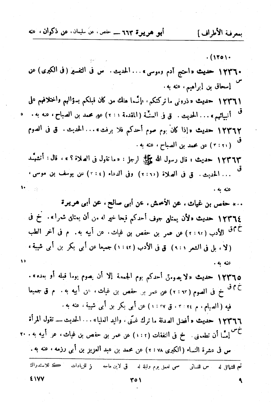 12365 -[خ م ق] حديث لا يصومنّ أحدكم يوم الجمعة إلا أن يصوم يوماً قبله أو بعده. (خ) في الصوم (63: 2) عن عمر بن حفص بن غياث، عن أبيه به.