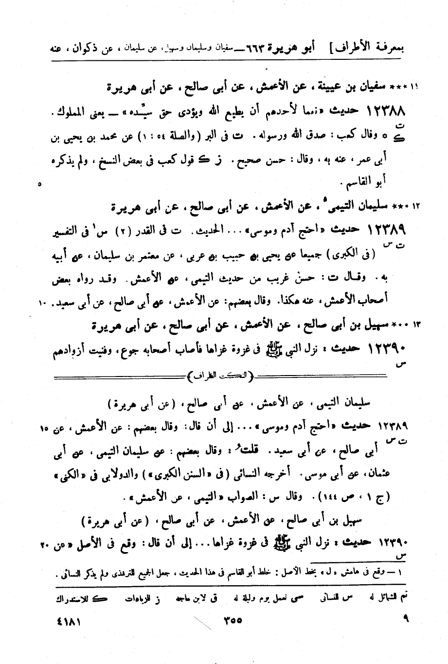 ت: حسن غريب من حديث التيمي، عن الأعمش. وقد رواه بعض أصحاب الأعمش، عنه هكذا، وقال بعضهم: عن الأعمش، عن أبي صالح، عن أبي سعيد. 13 سهيل بن أبي صالح، عن الأعمش، عن أبي صالح، عن أبي هريرة