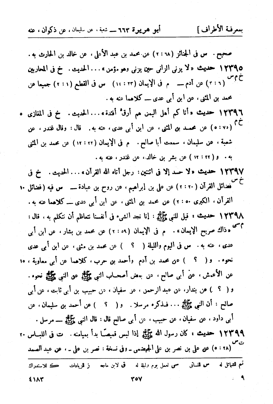 م في الإيمان (22: 12) عن محمد بن المثنى به. و (22: 12) عن بشر بن خالد، عن غندر، عنه به.