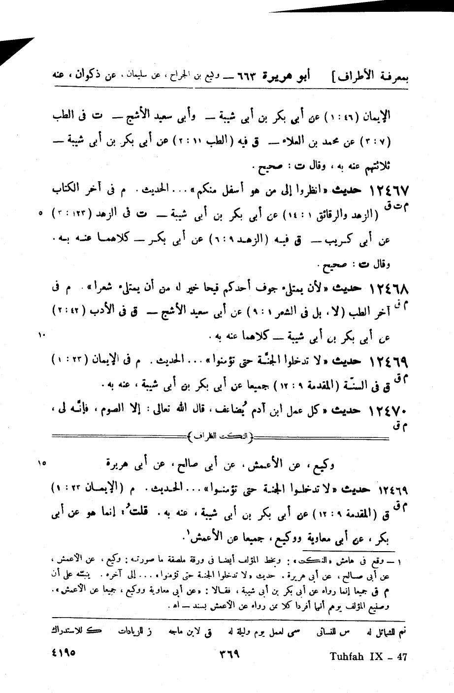 م في آخر الكتاب (الزهد والرقائق 1: 14) عن أبي بكر بن أبي شيبة -