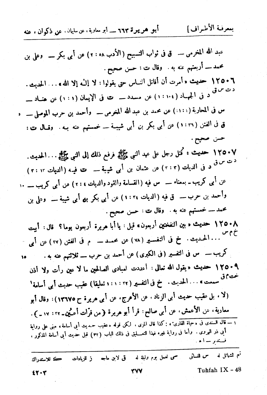خ في التفسير (32: 1: 1 تعليقاً) عقيب حديث أبي أسامة1 (لا، بل عقيب حديث أبي الزناد، عن الأعرج، عن أبي هريرة ح 13675) : وقال أبو معاوية، عن الأعمش، عن أبي صالح: قرأ أبو هريرة من قرّات أعيُن -[378]- (32: 17)