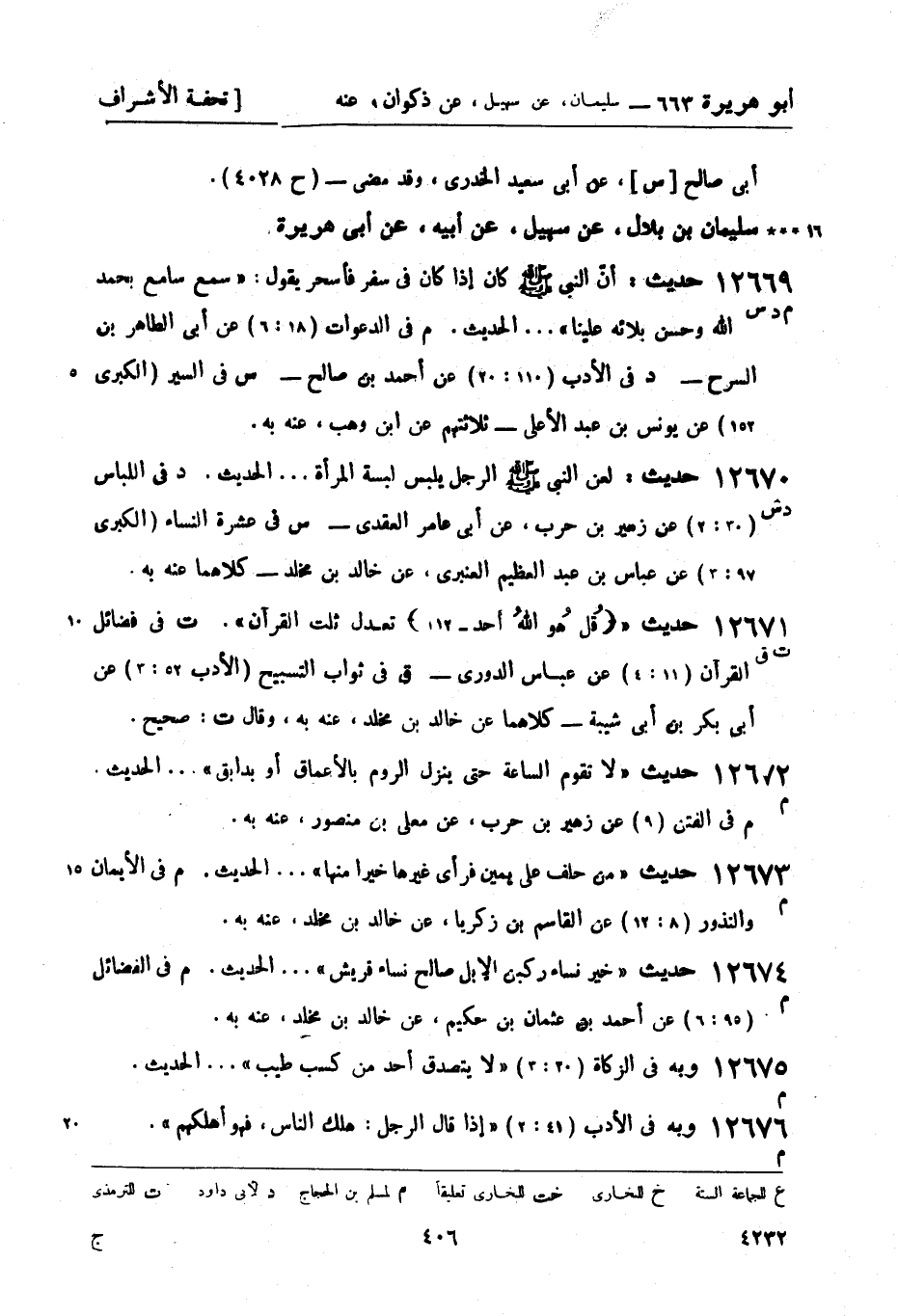 12671 -[ت ق] حديث قُل هو الله أحد (- 12) تعدل ثلث القرآن. ت في فضائل القرآن (11: 4) عن عباس الدوري - ق في ثواب التسبيح (الأدب 52: 3) عن أبي بكر بن أبي شيبة - كلاهما عن خالد بن مخلد، عنه به , وقال ت صحيح.