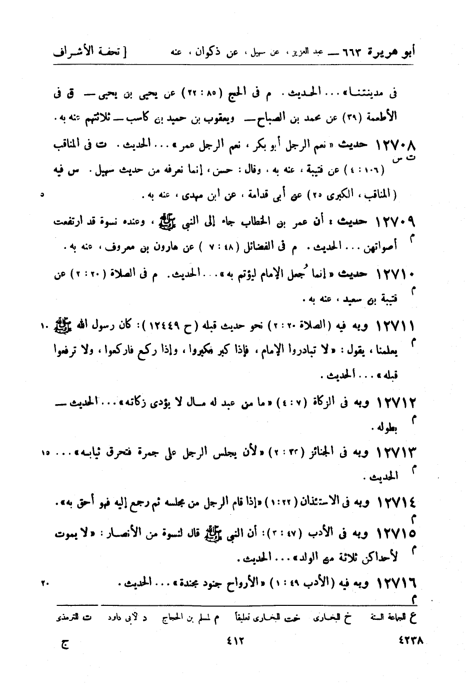 12708 -[ت س] حديث نعم الرجل أبو بكر، نعم الرجل عمر.... الحديث. ت في المناقب (106: 4) عن قتيبة، عنه به. وقال: حسن، إنما نعرفه من حديث سهيل، س فيه (المناقب , الكبرى 25) عن أبي قدامة , عن ابن مهدي، عنه به.