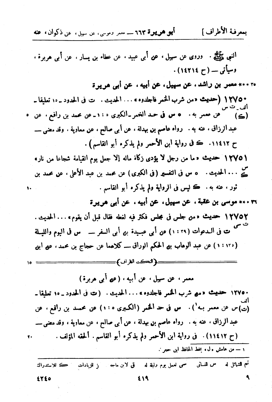 12750 - (ألف - ت س) (حديث من شرب الخمر فاجلدوه.... الحديث. ت في الحدود - 15 تعليقاً - عن معمر به. (ك) س في حد الخمر - الكبرى 5: 1 - عن محمد بن رافع، عن عبد الرزاق، عنه به. رواه عاصم ابن بهدلة، عن أبي صالح، عن معاوية، وقد مضى - ح 11412. ك في رواية ابن الأحمر ولم يذكره أبو القاسم) .