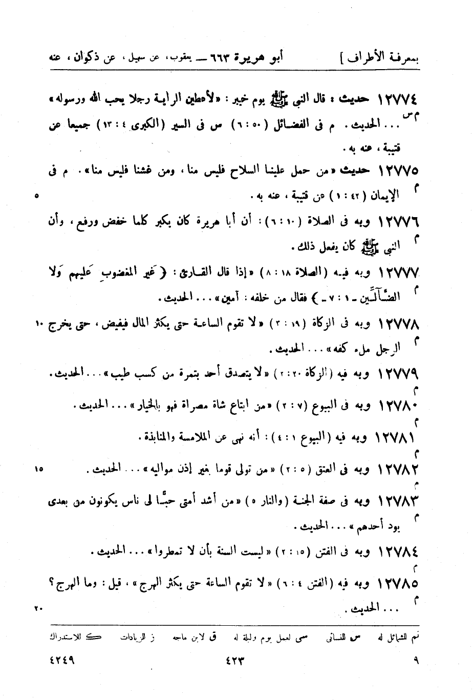 12774 -[م س] حديث: قال النبي صَلَّى اللَّهُ عَلَيْهِ وَسَلَّمَ يوم خيبر: لأعطين الراية رجلاً يحب الله ورسوله.... الحديث. م في الفضائل (50: 6) س في السير (الكبرى 4: 13) جميعاً عن قتيبة، عنه به.