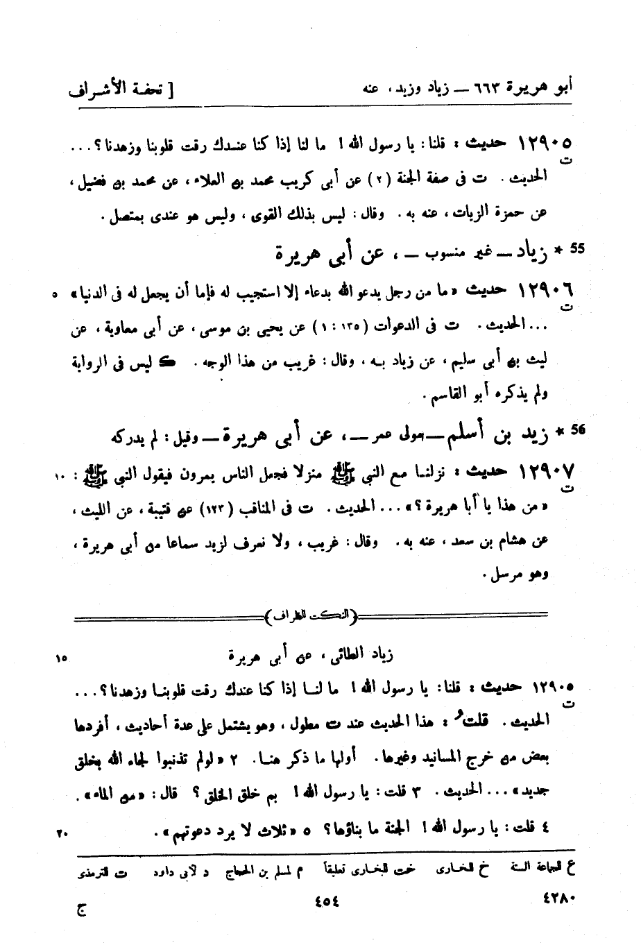 12907 -[ت] حديث: نزلنا مع النبي صَلَّى اللَّهُ عَلَيْهِ وَسَلَّمَ منزلاً فجعل الناس يمرون فيقول النبي صَلَّى اللَّهُ عَلَيْهِ وَسَلَّمَ: من هذا يا أبا هريرة؟.... الحديث. ت في المناقب (123) عن قتيبة، عن الليث، عن هشام بن سعد، عنه به. وقال: غريب، ولا نعرف لزيد سماعاً من أبي هريرة، وهو مرسل.