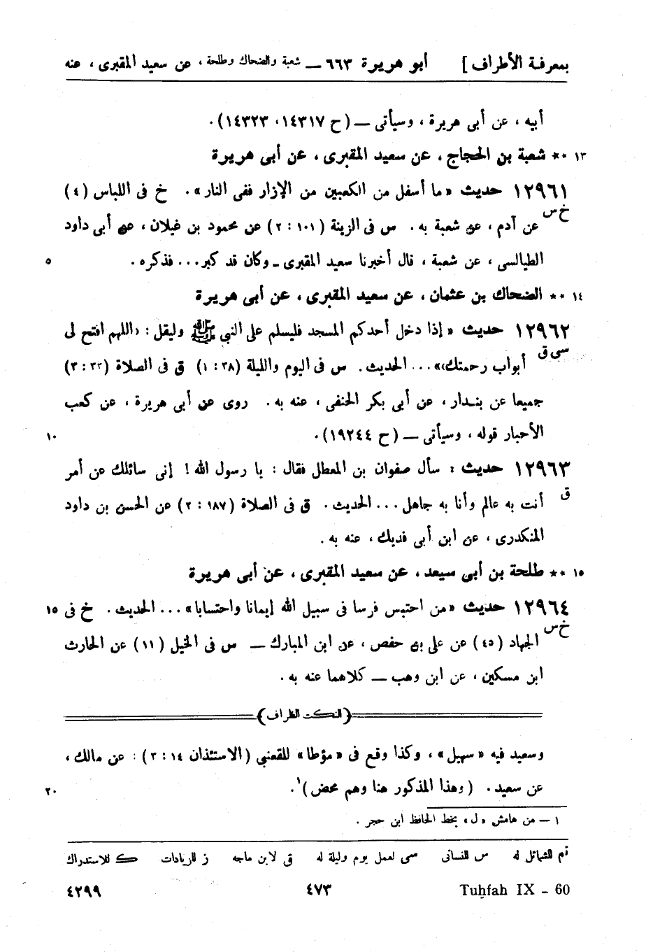 شعبة بن الحجاج، عن سعيد المقبري، عن أبي هريرة