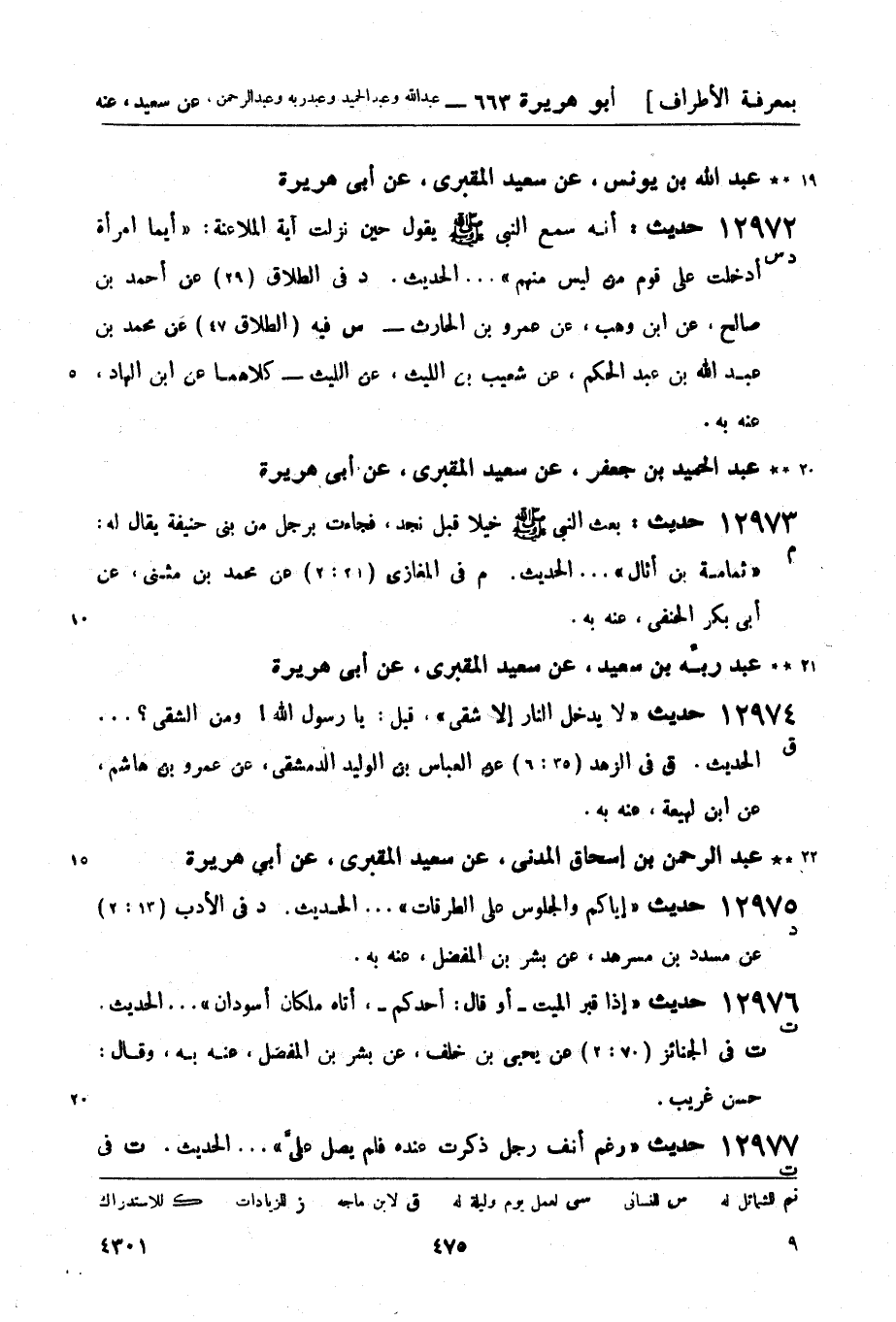 عبد ربَّه بن سعيد، عن سعيد المقبري، عن أبي هريرة