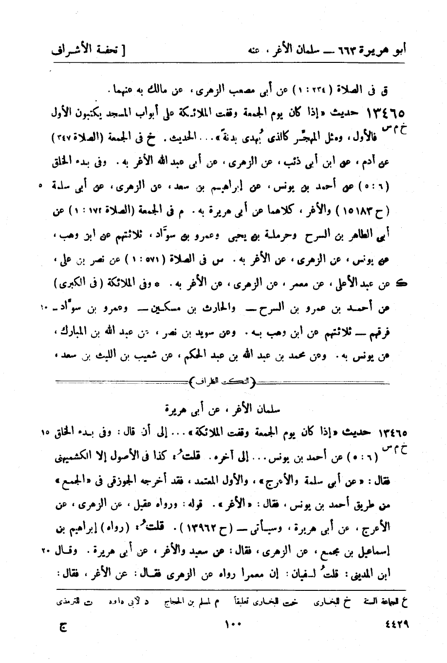 خ في الجمعة (الصلاة 347) عن آدم، عن ابن أبي ذئب، عن الزهري، عن أبي عبد الله الأغر به. وفي بدء الخلق (6: 5) عن أحمد بن يونس، عن إبراهيم بن سعد، عن الزهري، عن أبي سلمة (ح 15183) والأغر، كلاهما عن أبي هريرة به.