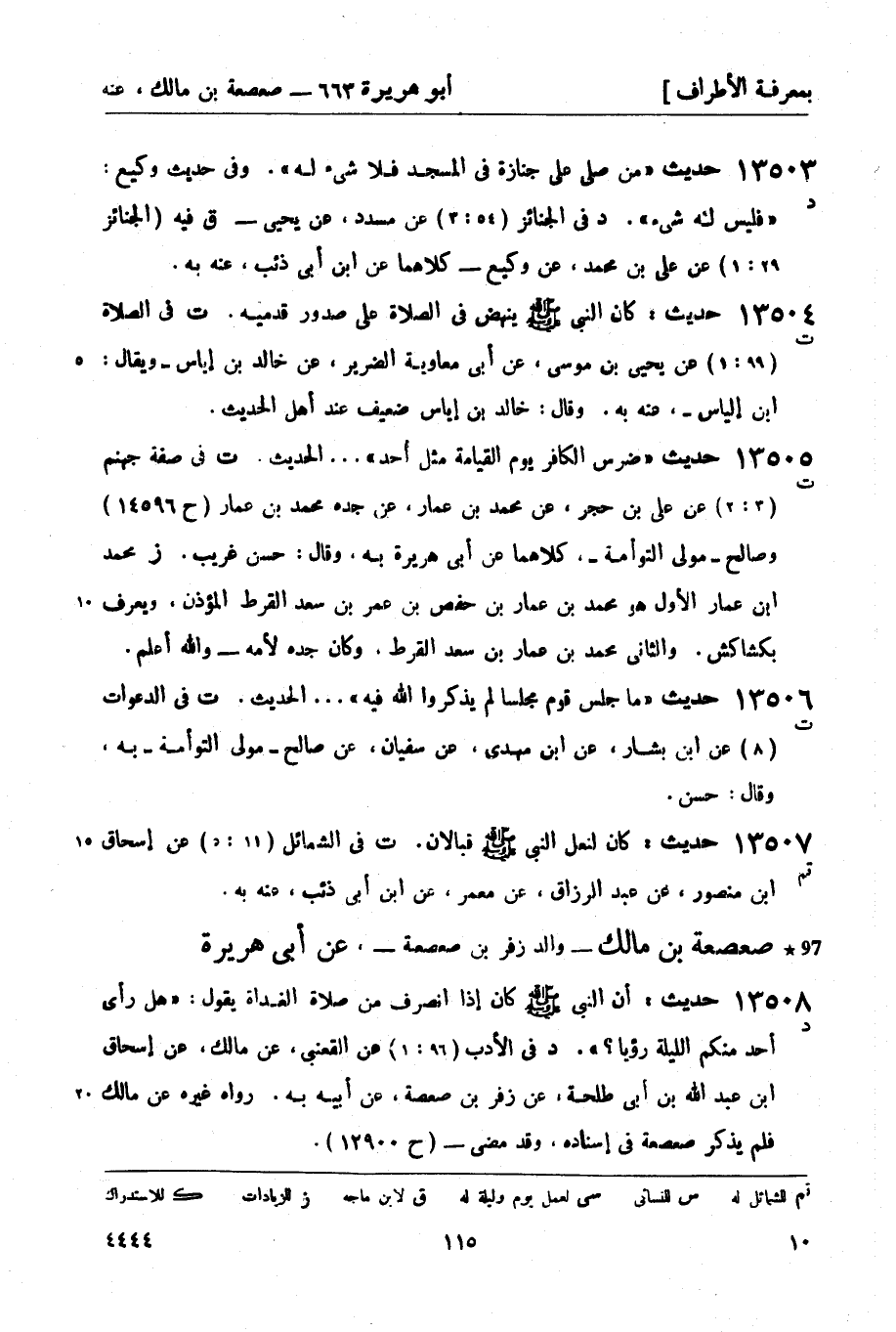 ت في صفة جهنم (3: 2) عن علي بن حجر، عن محمد بن عمار، عن جده محمد بن عمار (ح 14596) وصالح - مولى التوأمة -، كلاهما عن أبي هريرة به، وقال: حسن غريب. (ز) محمد بن عمار الأول هو محمد بن عمار بن حفص بن عمر بن سعد القرط المؤذن، ويعرف بكشاكش. والثاني محمد بن عمار بن سعد القرط، وكان جده لأمه - والله أعلم.
