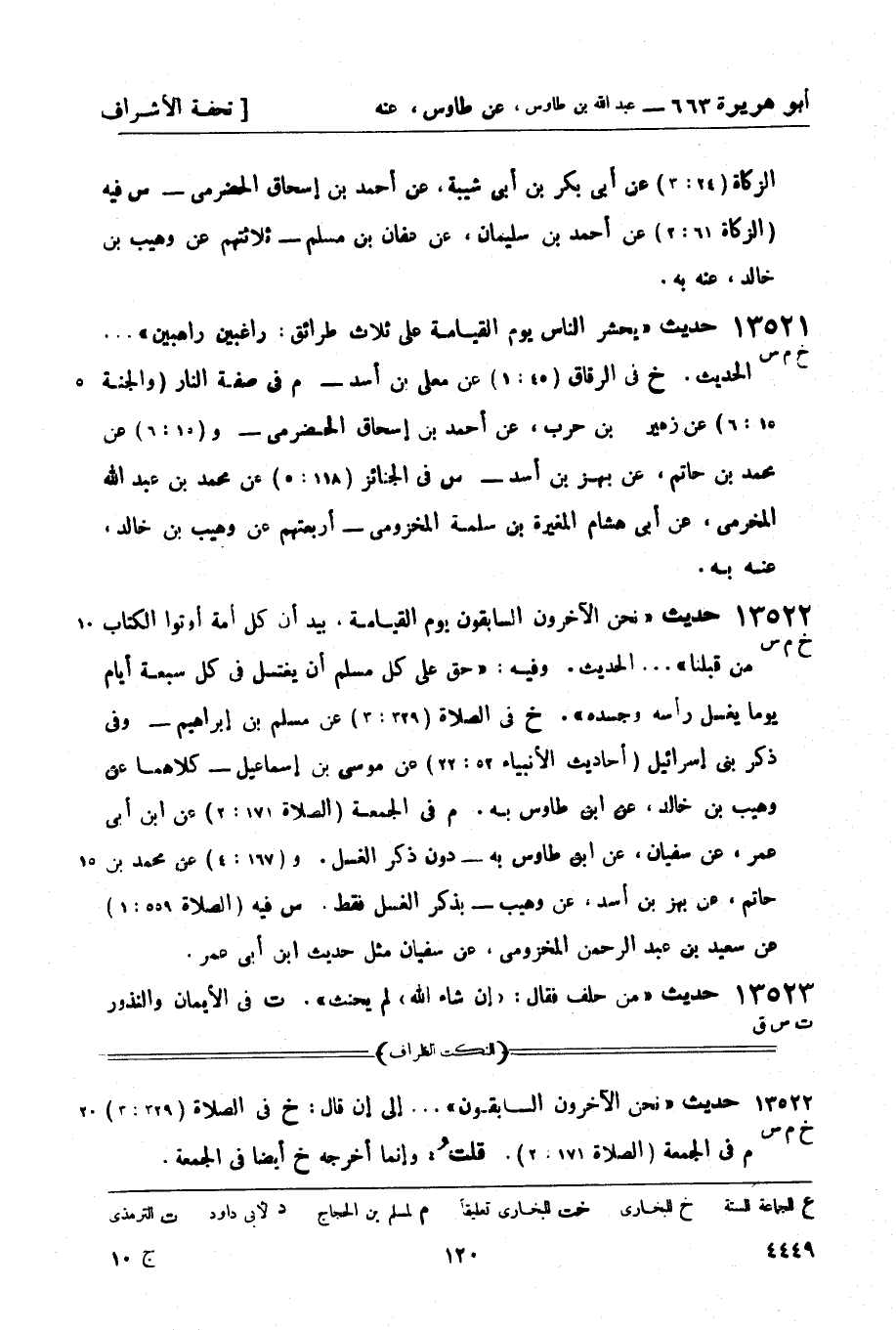 13522 -[خ م س] حديث نحن الآخرون السابقون يوم القيامة، بيد أن كل أمة أوتوا الكتاب من قبلنا ... الحديث. وفيه: حق على كل مسلم أن يغتسل في كل سبعة أيام يوماً يغسل رأسه وجسده.