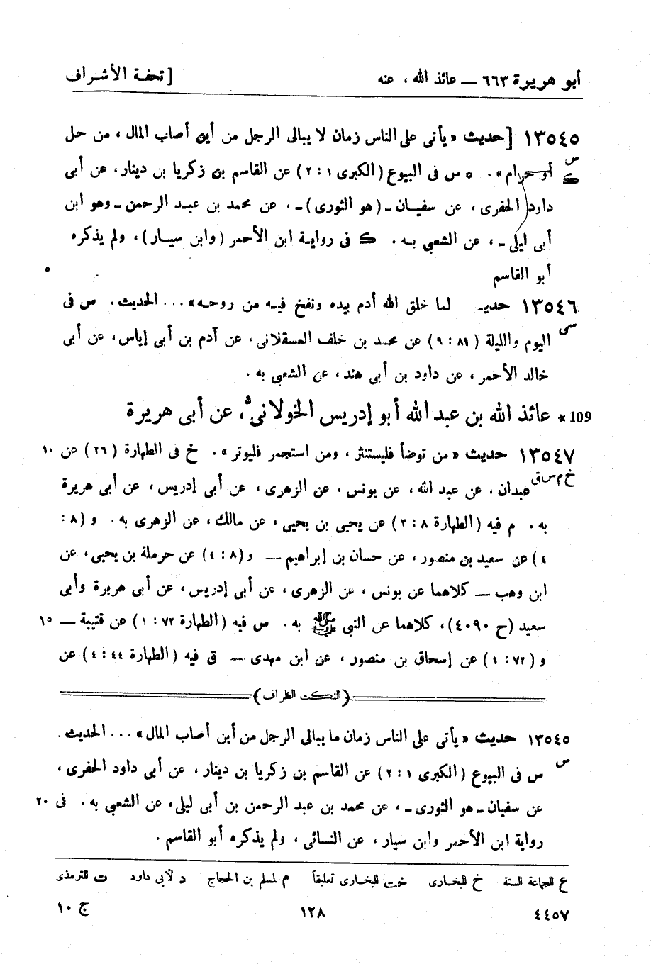 ق فيه (الطهارة 44: 4) عن -[129]- أبي بكر بن أبي شيبة، عن زيد بن الحباب - وداود بن عبد الله الجعفري - أربعتهم عن مالك به. (ز) قال ابن الفلكي: رواه كامل - يعني بن طلحة - الجحدري، عن مالك، عن الزهري، عن أبي إدريس، عن أبي ثعلبة الخشني وقال أبو أحمد الحافظ: إن كاملاً أخطأ فيه.