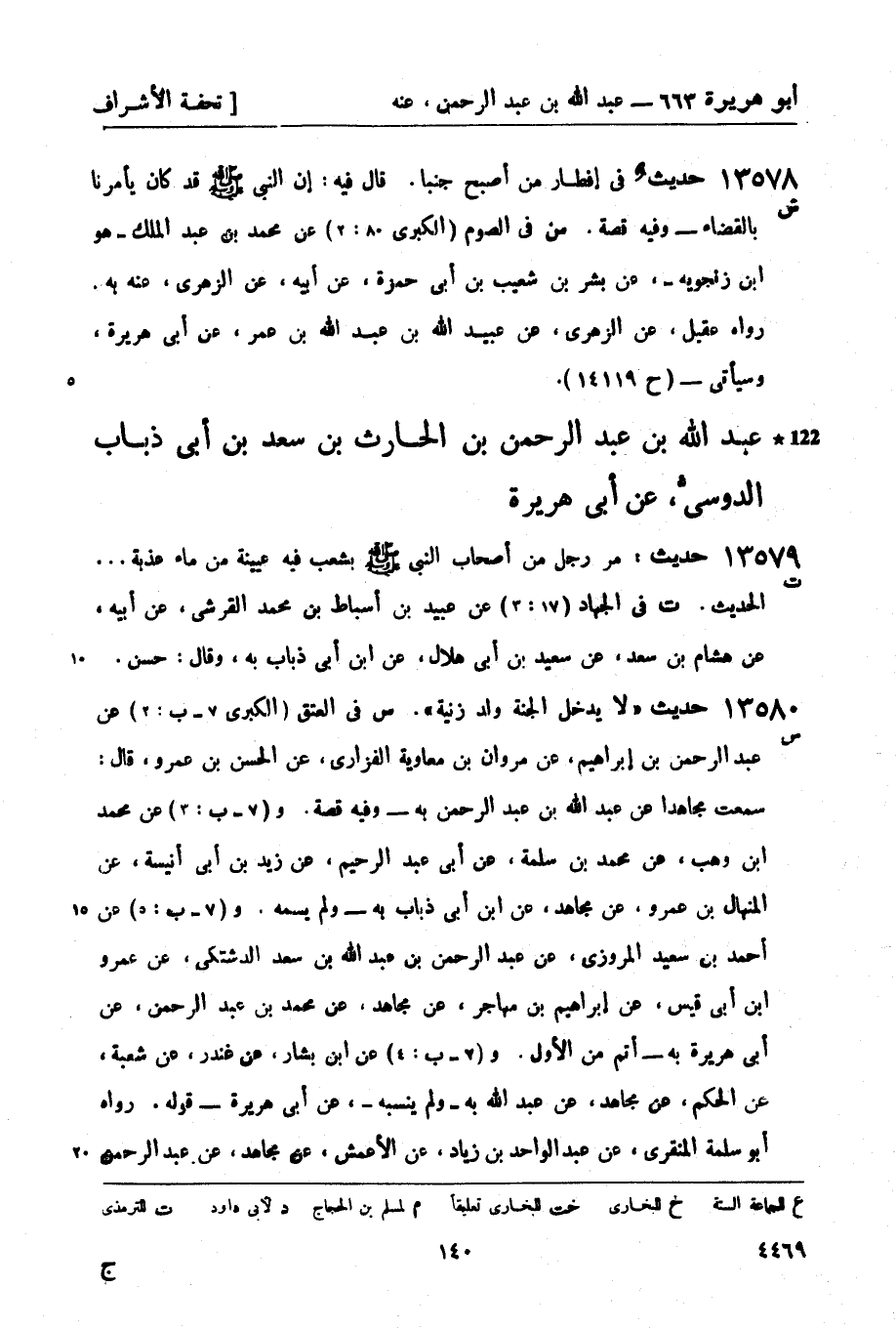 عبد الله بن عبد الرحمن بن الحارث بن سعد بن أبي ذباب الدوسيُّ، عن أبي هريرة