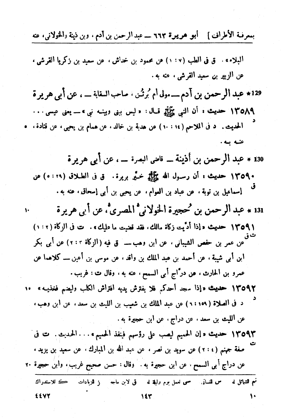 ت في صفة جهنم (4: 2) عن سويد بن نصر، عن عبد الله بن المبارك، عن سعيد بن يزيد، عن دراج أبي السمح، عن ابن حجيرة به. وقال: حسن صحيح غريب، وابن حجيرة -[144]- هو عبد الرحمن المصري.