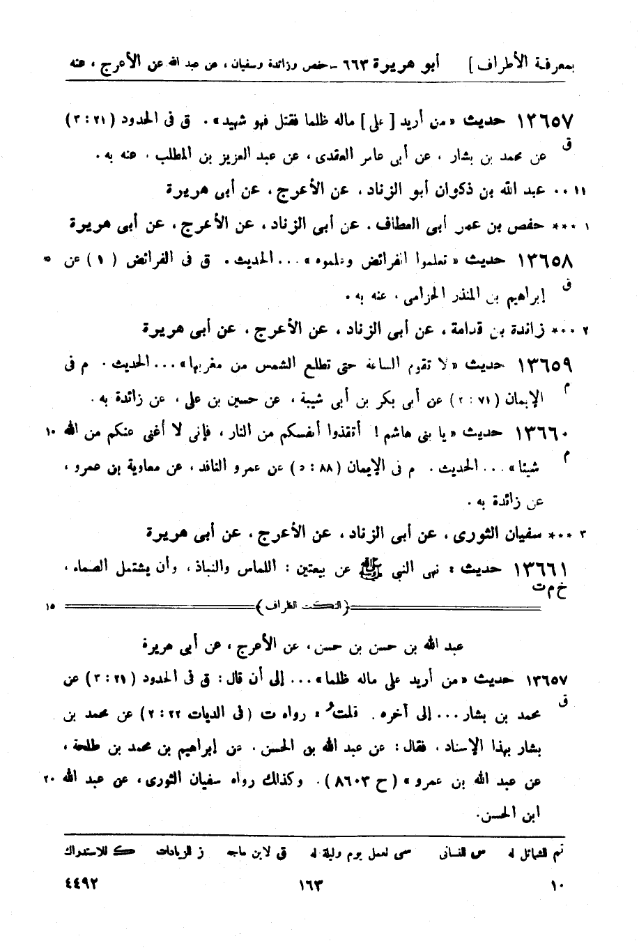 13657 -[ق] حديث من أريد [على] ماله ظلماً فقتل فهو شهيد. (ق) في الحدود (21: 3) عن محمد بن بشار، عن أبي عامر العقدي، عن عبد العزيز بن المطلب، عنه به.