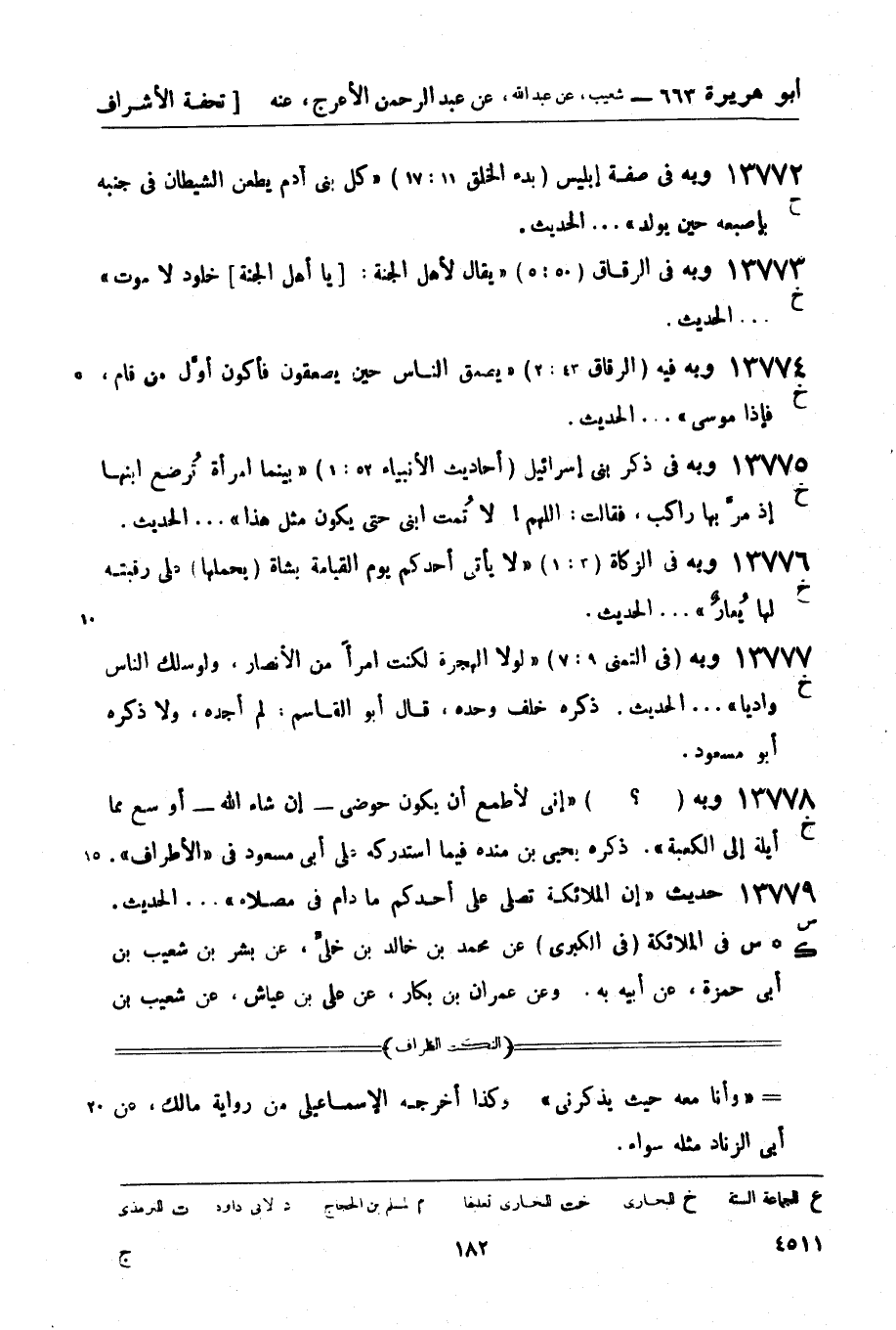 س في الملائكة (في الكبرى) عن محمد بن خالد بن خليَ، عن بشر بن شعيب بن أبي حمزة، عن أبيه به. وعن عمران بن بكار، عن علي بن عياش، عن شعيب بن -[183]- أبي حمزة به. (ك) ليس في الرواية ولم يذكره أبو القاسم.