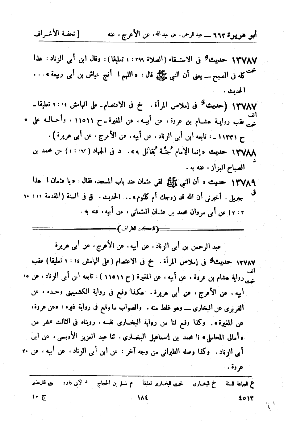 13787 - (ألف خت) (حديث في إملاص المرأة. (خ) في الاعتصام - على الهامش 14: 2 تعليقاً - عقب رواية هشام بن عروة، عن أبيه، عن المغيرة - (ح 11511) ، وأحاله على (ح 11231) -: تابعه ابن أبي الزناد، عن أبيه، عن الأعرج، عن أبي هريرة) .