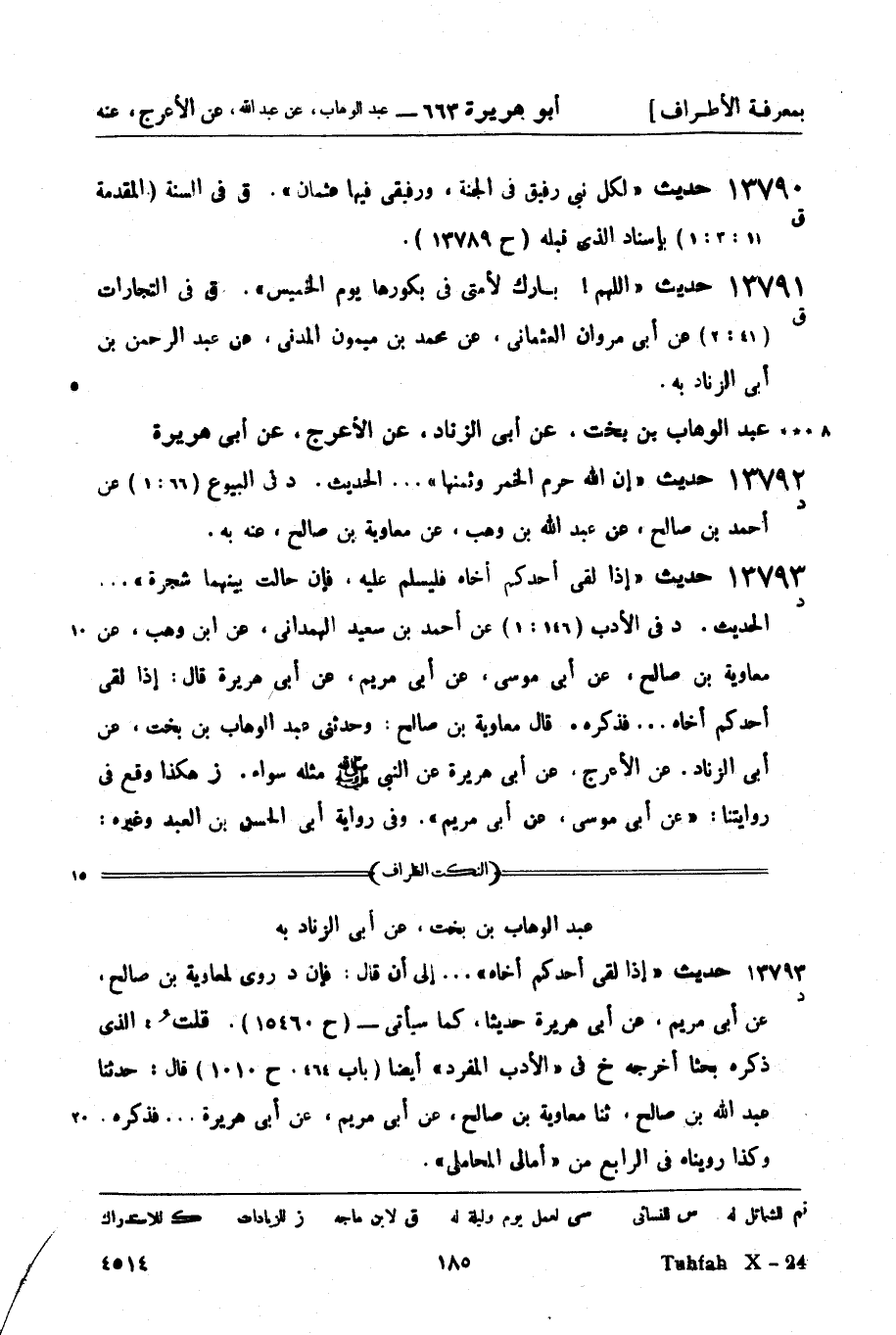 عبد الوهاب بن بخت، عن أبي الزناد، عن الأعرج، عن أبي هريرة